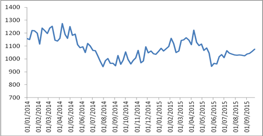 表1 2015年9月中國(guó)公路物流運(yùn)價(jià)指數(shù)表