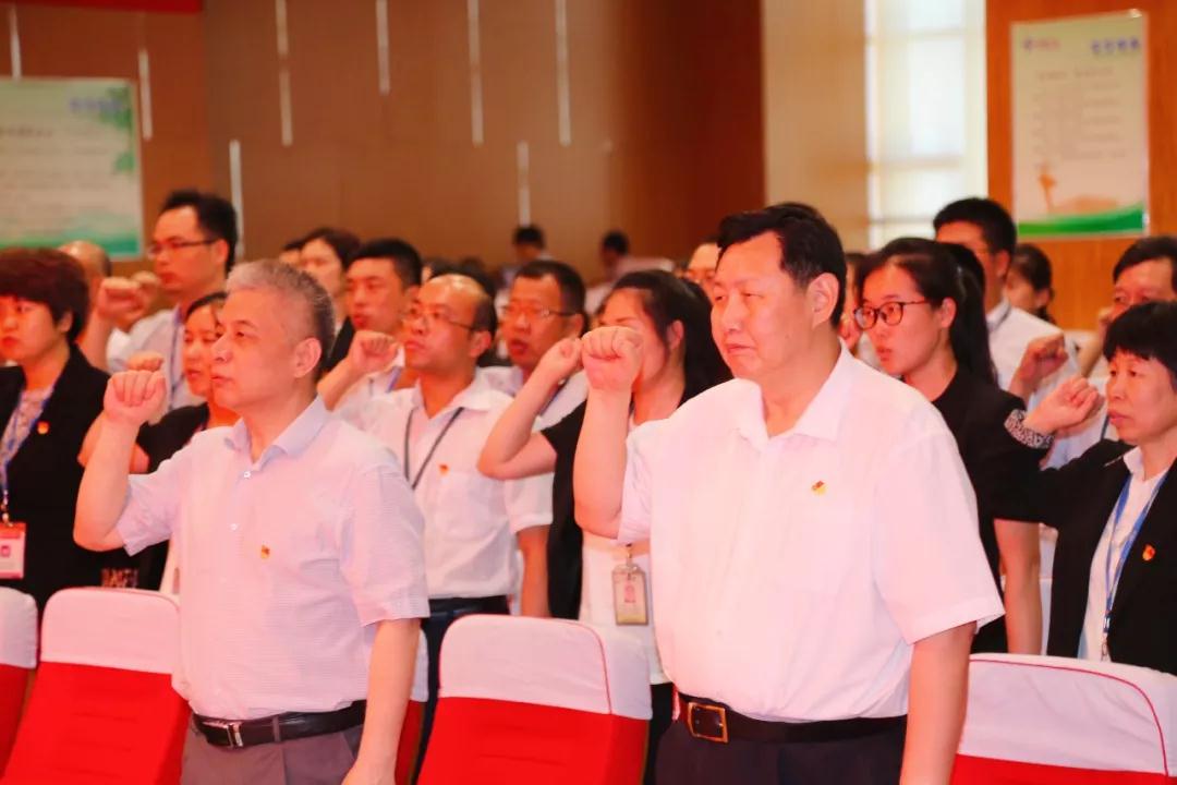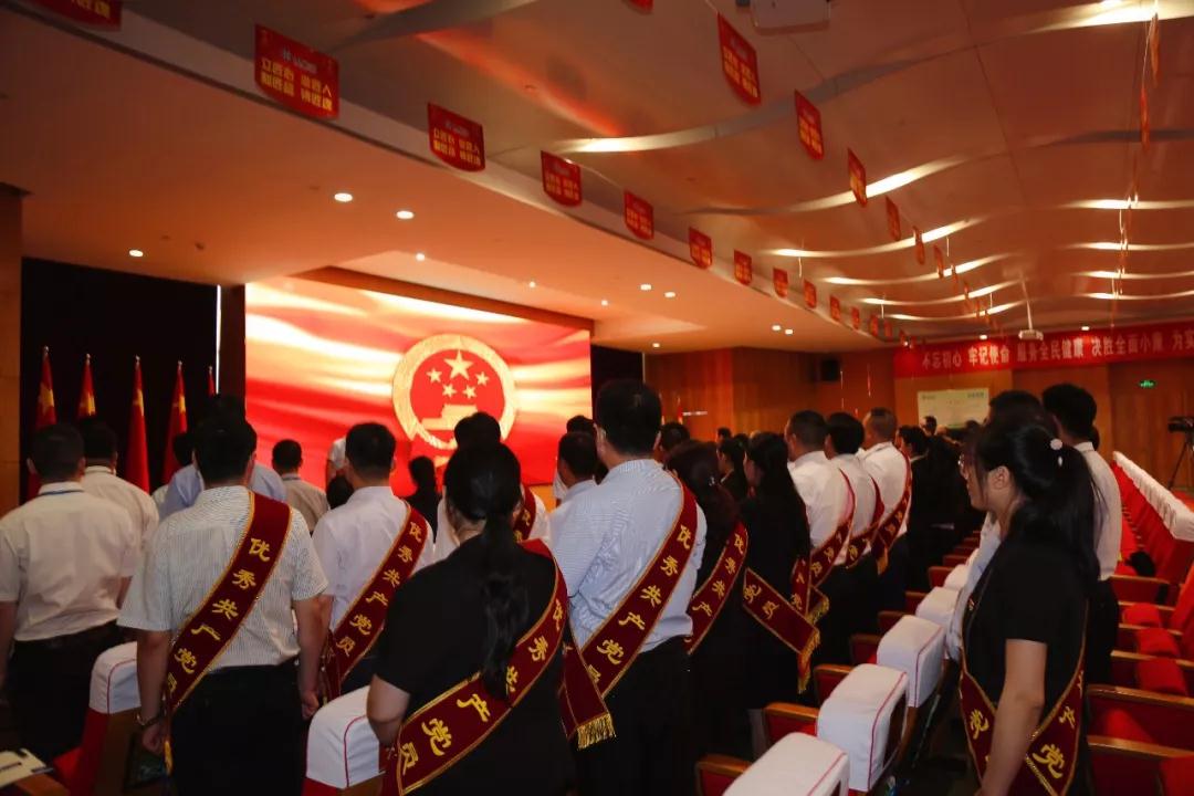 會上,全體黨員重溫入黨誓詞,在鮮紅的黨旗下,舉起右手莊嚴宣誓。中國醫藥物資協會綜合行政部部長饒春艷作為預備黨員,在余平書記及中國醫藥物資協會黨支部、神威藥業集團100多位老黨員的帶領下,宣讀入黨誓言,正式入黨。