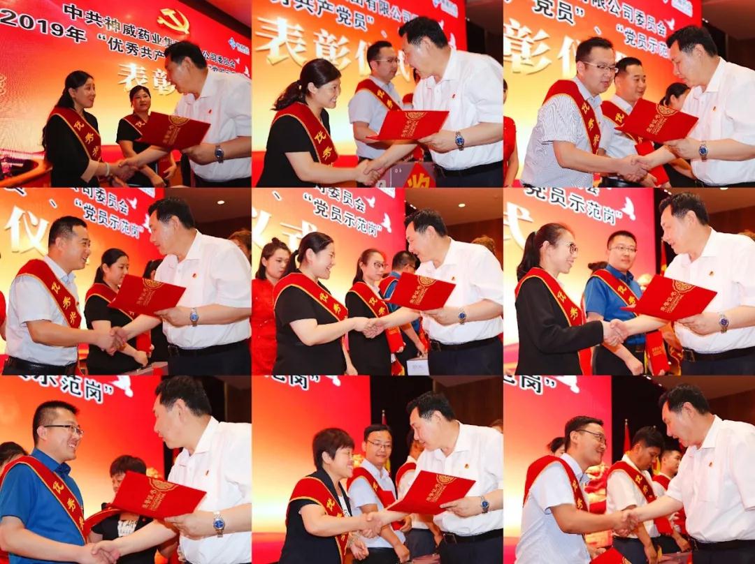 本次會議還對神威藥業集團2019年“優秀共產黨員”、“黨員示范崗”進行表彰,企業營銷系統黨支部書記劉秀輝宣讀《中共神威藥業集團有限公司委員會關于表彰2019年“優秀共產黨員”、“黨員示范崗”的決定》授予在過去一年中業績突出,為企業發展做出積極貢獻的王振軍、焦光磊等14名黨員“優秀共產黨員”光榮稱號,授予綜合制劑一車間包裝班組等5個崗位“黨員示范崗”光榮稱號。余平、方賢業為獲獎人員頒獎。