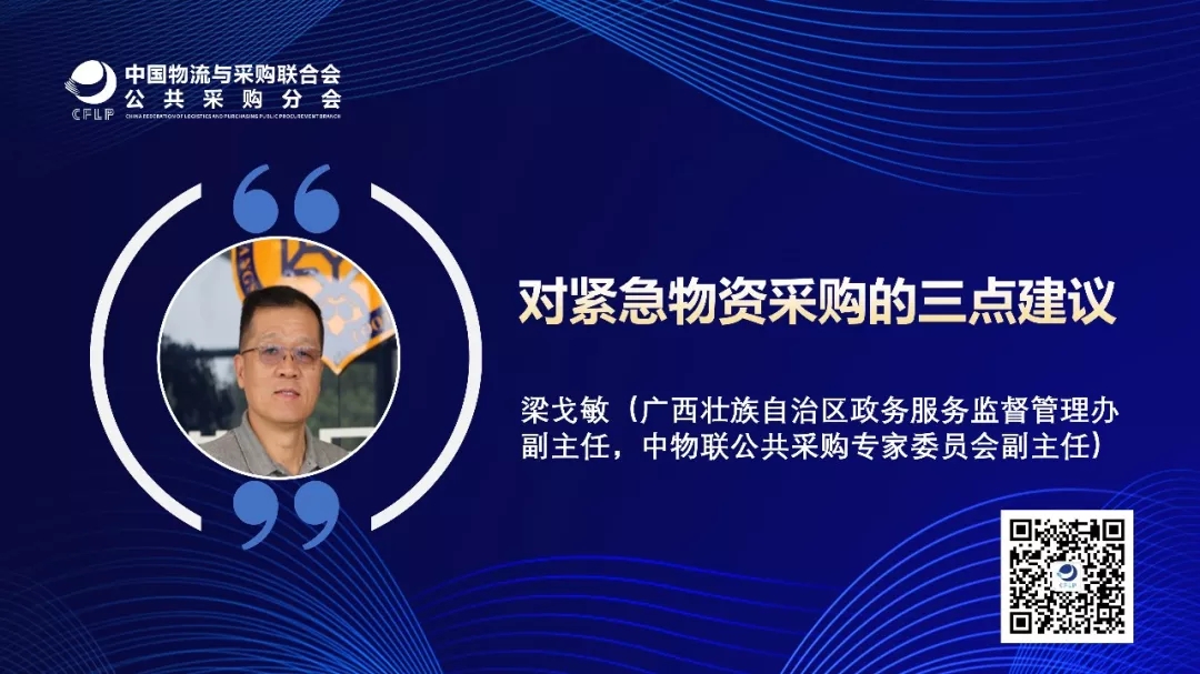 針對這一次防治新冠病毒的應急物資保障情況,結合我自己的工作,有這么幾個體會:第一,制度建設層面。我們現在必須要考慮在《預算法》和《政府采購法》的基礎之上,進一步要完善緊急采購的法律法規,彌補政府采購法針對緊急采購沒有操作性的規定這么一個缺陷。這一次的防治新冠病毒,財政部開通了應急采購的綠色通道,此舉應該進一步細化,形成制度性文件,指導緊急采購,那么在這個指導性文件里面我們要明確啟動緊急采購的條件、方式,包括支付方式。另一方面企業的緊急采購,我覺得就按照去年中國物流與采購聯合會公共采購分會發布的《國有企業采購操作規范》來進行操作,就剛好能夠彌補在企業自主采購這方面的不足。同時也必須要考慮清楚在應急物資緊急采購的過程中,有關工程貨物服務涉及到征用、租賃、調用這一些方式的社會補償。