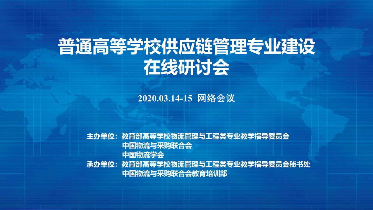 為解決供應鏈管理本科專業建設面臨新機遇和挑戰,扎實做好供應鏈管理專業建設工作,2020年3月14-15日,由教育部高等學校物流管理與工程類專業教學指導委員會(以下簡稱物流教指委)、中國物流與采購聯合會、中國物流學會聯合發起的“供應鏈管理專業建設在線研討會”通過網絡在線方式召開。