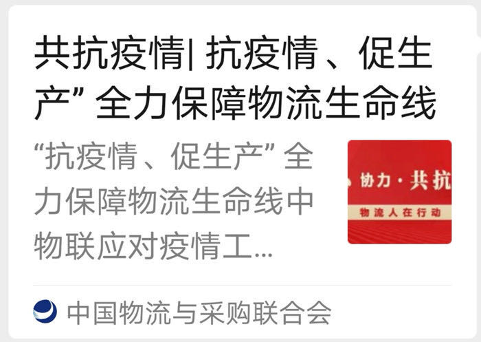 中國物流與采購聯(lián)合會對湖北物流行業(yè)的抗疫保供、復工復產(chǎn)行動,給予充分肯定。