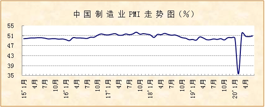 中國物流與采購聯合會、國家統計局服務業調查中心發布的2020年6月份中國制造業采購經理指數(PMI)為50.9%,較上月上升0.3個百分點,連續4個月運行在50%以上,經濟恢復勢頭鞏固。從分項指數來看,市場需求整體回升,企業生產和采購活動上升,產業鏈價格聯動上行,新動能運行相對穩定,大型企業保持穩定支撐作用,總體來看產業鏈穩定性增強。但市場需求仍需強化,外部壓力仍然較大,小企業下行壓力加大。