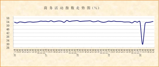 中國物流與采購聯合會、國家統計局服務業調查中心發布的2020年6月份中國非制造業商務活動指數為54.4%,較上月上升0.8個百分點。二季度以來,非制造業商務活動指數呈現逐月環比上升走勢,表明非制造業恢復性勢頭較好。結合細分指數變化來看,當前經濟恢復連續性和聯動性較好,大部分行業已經有所恢復,經濟恢復勢頭得到進一步鞏固。