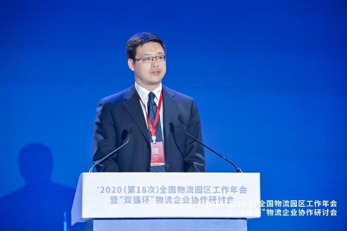 11月12-14日,由中國物流與采購聯合會、中國物流學會、青島市人民政府、山東省港口集團聯合主辦的2020年(第18次)全國物流園區工作年會暨“雙循環”物流企業協作研討會山東省青島市召開。國家發展改革委經濟貿易司副司長張江波,交通運輸部綜合規劃司調研員劉凌出席會議并通報物流政策思路。山東省發展改革委黨組成員、副主任孫來斌,青島市市委常委、宣傳部部長孫立杰,山東省港口集團黨委副書記、董事、總經理李奉利參加會議并致辭。中國物流與采購聯合會副會長、中國物流學會執行副會長賀登才主持會議并致辭演講。