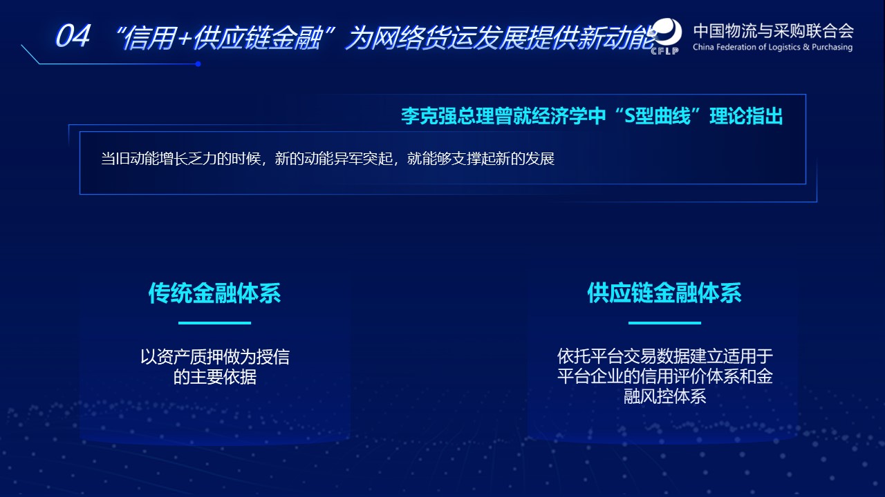 四是“信用+供應(yīng)鏈金融”為網(wǎng)絡(luò)貨運(yùn)發(fā)展提供新動(dòng)能