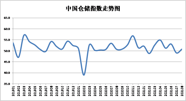 中國物流與采購聯(lián)合會(huì)和中儲(chǔ)發(fā)展股份有限公司聯(lián)合調(diào)查的中國倉儲(chǔ)指數(shù),2021年8月份為50.8%,較上月回升1.7個(gè)百分點(diǎn),重回50%以上的擴(kuò)張區(qū)間,各分項(xiàng)指數(shù)較上月均有不同程度回升,表明行業(yè)運(yùn)行回暖,前期下行壓力有所緩解。從分項(xiàng)指數(shù)變化情況來看,有以下幾個(gè)特點(diǎn):