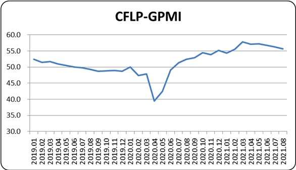 2021年8月份,非洲制造業PMI較上月上升4.5個百分點至52%,顯示非洲制造業有所恢復,增速較上月明顯回升。伴隨著南非騷亂的平息和疫情對南非的影響有所減弱,南非制造業加快恢復,是非洲制造業回升的主要動力。