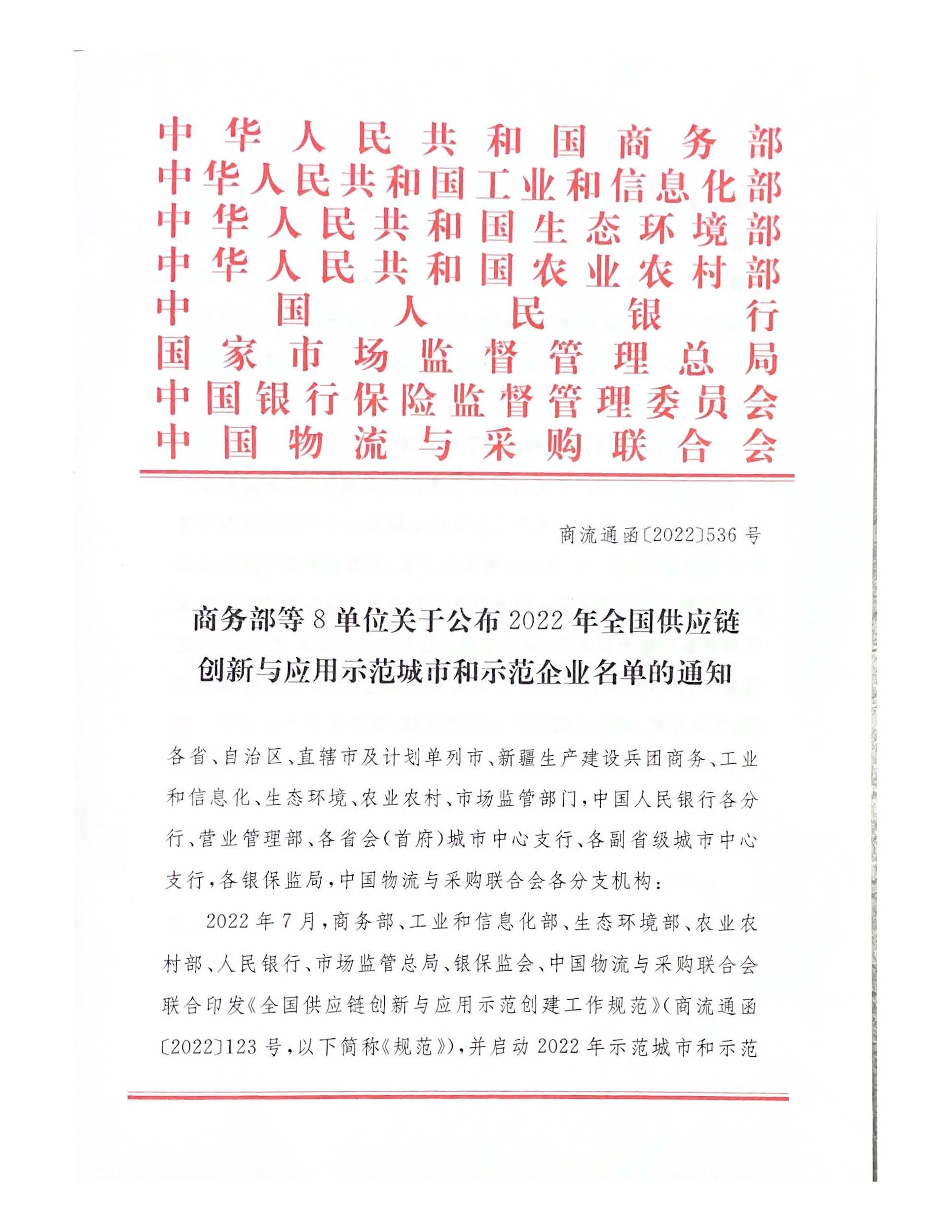 商務部等8部門關于公布2022年全國供應鏈創新與應用示范城市和示范企業名單的通知.pdf