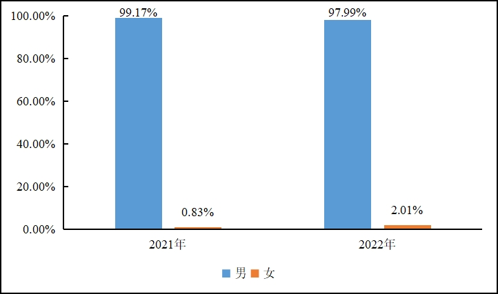 貨車司機中“女司機”有所增加。調查數據顯示,被調查貨車司機以男性為主,占比為97.99%。但是,女性貨車司機從業者占比較上年有較大幅度增加。