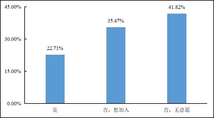 據調查數據顯示,目前參與調查的貨車司機中有22.71%已加入工會,還有77.29%的貨車司機尚未加入工會組織,其中35.47%的貨車司機表示未來有意愿加入工會組織。