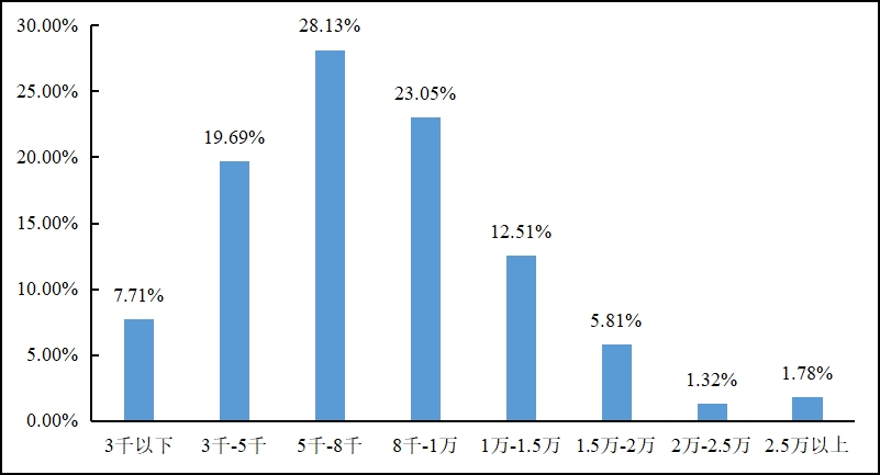 圖20 調查司機月均純收入(扣除通行費、油費等成本)水平分布情況