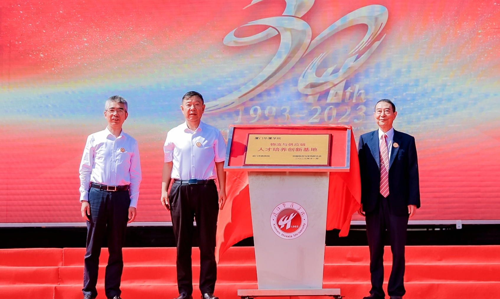 會上,舉辦了中物聯、廈門市教育局共建廈門華廈學院“物流與供應鏈人才培養創新基地”的授牌儀式,任豪祥、廈門市教育局副局長洪軍和廈門華廈學院校長謝增鴻共同為基地揭牌。