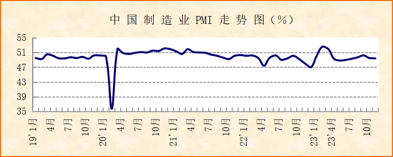 中國物流與采購聯合會、國家統計局服務業調查中心發布的2023年11月份中國制造業采購經理指數(PMI)為49.4%,較上月微幅下降0.1個百分點,主要分項指數較上月的變化也都比較小,基本上處于環比持平狀態,結合來看,11月經濟運行總體平穩。分行業分析,新動能較快回升,是支撐制造業運行保持平穩的主要因素,裝備制造業PMI和高技術制造業PMI分別為51.6%和51.2%,較上月上升0.9個和2個百分點。基礎原材料行業加快收縮,消費品制造業增速有所回調,基礎原材料行業PMI和消費品制造業PMI均較上月有所下降。