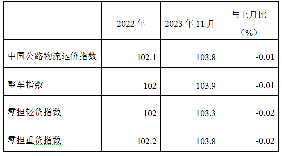 表1 2023年11月中國公路物流運價指數(shù)表