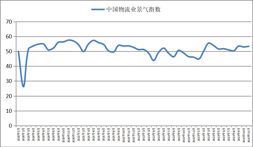中國物流與采購聯合會發布的2023年12月份中國物流業景氣指數為53.5%,環比回升0.2個百分點。12月份物流景氣保持穩中有升,主要指標中業務總量指數、新訂單指數、資金周轉率指數、固定資產投資完成額指數、從業人員指數、業務活動預期指數均處于擴張區間,反映出本月物流運行基本態勢向好,業務量有所增長,新增訂單需求平穩,微觀盈利改善。全年來看大部分分項指標年度均值高于上年,穩中向好發展局面進一步穩固。