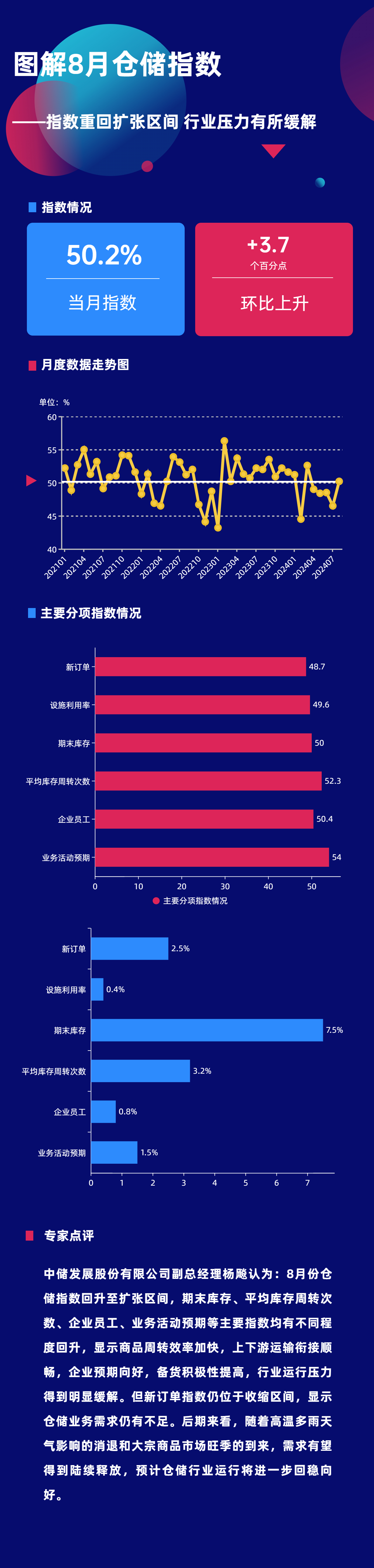 圖解8月份倉儲指數——指數重回擴張區間 行業壓力有所緩解