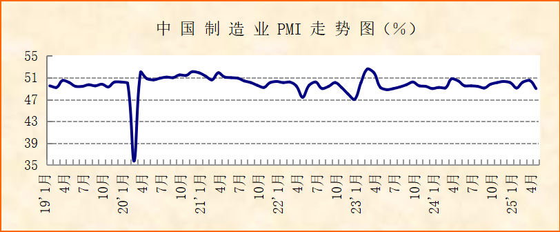 中國物流與采購聯合會、國家統計局服務業調查中心發布的2025年4月份中國制造業采購經理指數(PMI)為49%,較上月下降1.5個百分點,在連續2個月運行在擴張區間后落入50%以下,顯示宏觀經濟運行有所波動。分項指數變化顯示,4月份制造業出口短期收緊,拖累市場需求整體,企業生產采購活動整體也有所放緩,但經濟穩定運行仍有較好基礎,國內需求穩定釋放,企業生產下降態勢可控,新動能和消費品市場供需保持穩中有增,企業對后市仍保持樂觀主基調。