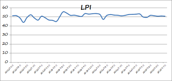 中國物流與采購聯合會發布的2025年7月份中國物流業景氣指數為50.5%,環比回落0.3個百分點。本月,盡管有局地洪澇和連續高溫等不利天氣因素影響,但全國物流需求總量大、增勢穩,指數反映出總需求保持擴張,企業內生動力較強,物流供需保持適配增長。分項指數中業務總量指數、新訂單指數、庫存周轉次數指數、資金周轉率指數、物流服務價格指數、固定資產投資完成額指數、從業人員指數和業務活動預期指數處于50%以上擴張區間。