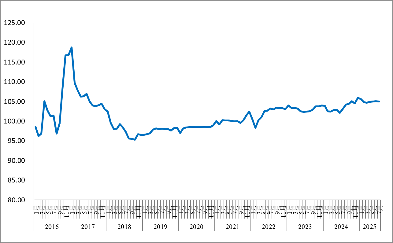 2025年7月份,由中國物流與采購聯(lián)合會和林安物流集團(tuán)聯(lián)合調(diào)查的中國公路物流運價指數(shù)為105點,環(huán)比回落0.05%,同比去年回升1.8%。從月內(nèi)看,第一、二、三周運價指數(shù)環(huán)比略微回落,第四周運價指數(shù)略有回升。