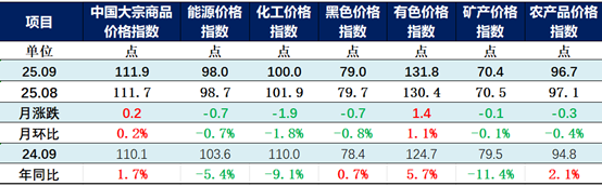由中物聯大宗商品流通分會和上海鋼聯等單位聯合調查,中國物流與采購聯合會發布的2025年9月份中國大宗商品價格指數(CBPI)為111.9點,環比上漲0.2%,同比上漲1.7%。從指數運行情況來看,指數連續五個月回升,表明隨反內卷、促增長等政策繼續發力,企業預期樂觀,生產經營保持擴張,大宗商品市場總體運行平穩,延續溫和回升態勢。但當前全球經濟復蘇仍面臨地緣政治、貿易摩擦等挑戰,部分行業有效需求仍顯不足,企業生產經營壓力仍然較大。鞏固經濟回升向好勢頭,需進一步加大宏觀經濟調節力度,著力激發企業創新活力,釋放內需潛力。