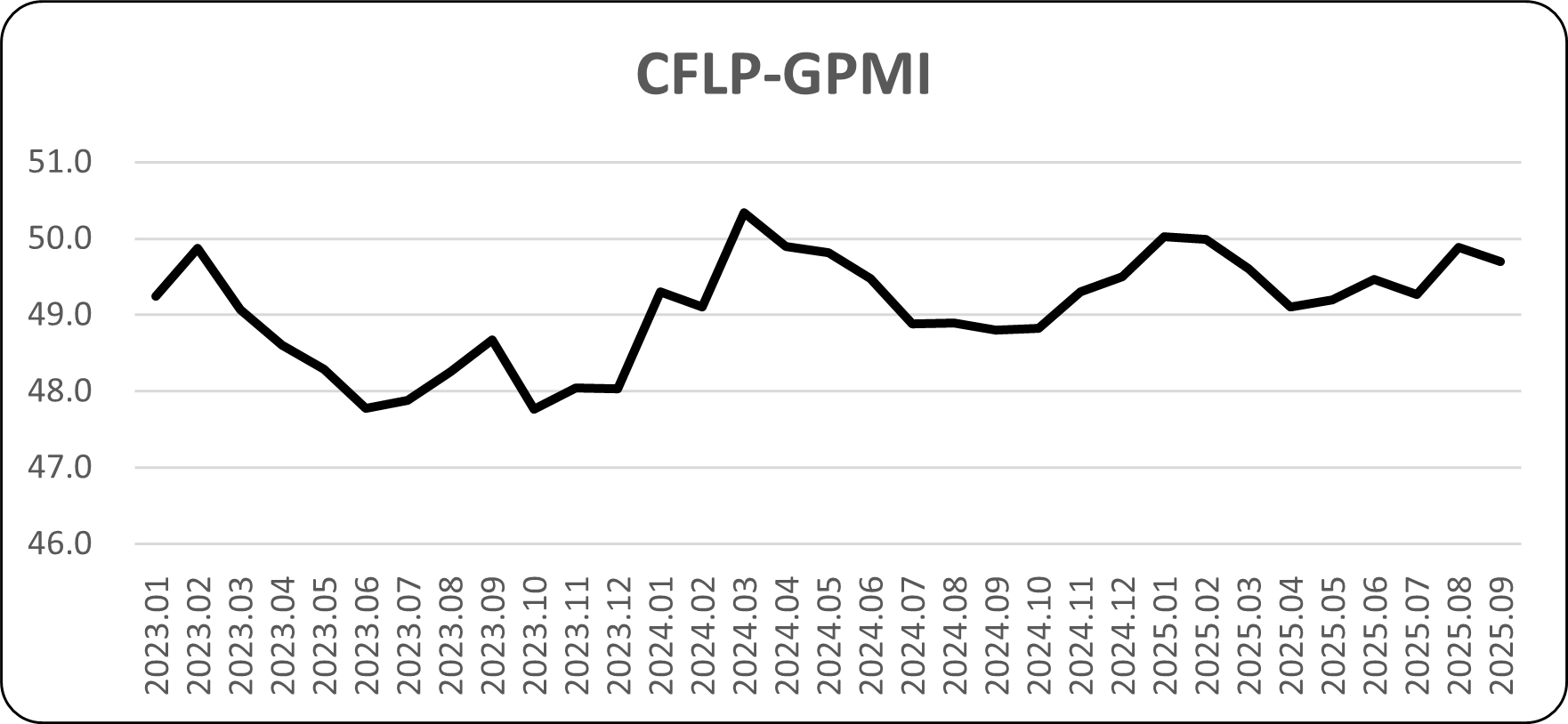 中國物流與采購聯合會發布,2025年9月份全球制造業PMI為49.7%,較上月小幅下降0.2個百分點,連續7個月在49%-50%的區間內。三季度,全球制造業PMI均值為49.6%,較二季度上升0.3個百分點。