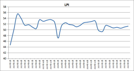 中國物流與采購聯合會發布的2025年9月份中國物流業景氣指數為51.2%,環比回升0.3個百分點。9月份供應鏈上下游產供銷有效銜接,物流需求增長平穩,服務價格總體穩中有升,企業經營內生動力較好。連續3個月數據來看,物流需求側相關指標持續保持擴張區間,物流景氣指數累計回升0.4個百分點,業務總量指數和新訂單指數累計分別回升0.4和0.9個百分點,企業經營活力趨穩,物流服務價格指數、從業人員指數、主營業務利潤指數連續回升。