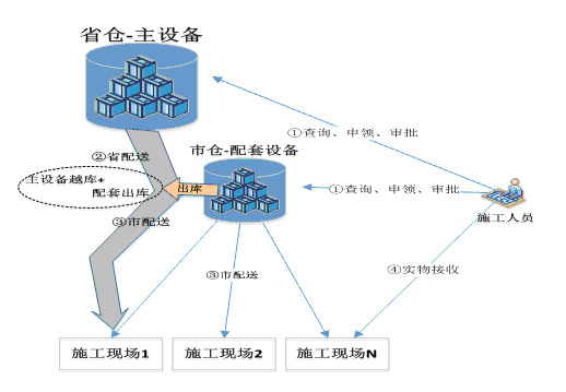 為最大限度避免全省物資采購后形成呆滯的風險,減少全省庫存壓力,利用廣東移動大規模的實物采購需求優勢,由省公司統一與部分通用設備供應商簽訂VOI供貨協議,通過省公司倉庫對全省通用類通信設備進行實物備貨,待市公司建設部門有實物生產需求時,項目建設人員按通用物資的領用流程向省公司進行申領,由省公司將物資集中配送至地市生產需求點。在整個通用物資申領流程完成后,地市公司再與相關設備供應商進行實物交易結算,有效避免地市提前采購而形成庫存積壓、呆滯的管理風險。廣東移動通用庫VOI模式業務運營示意見圖4: