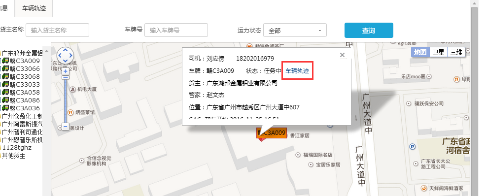 直觀展示每個貨主下的運力及當前的最新位置,方便運力智能調度。