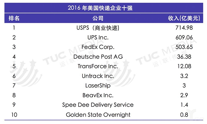 美國快遞行業(yè)巨頭壟斷市場現(xiàn)象非常明顯,三大快遞企業(yè)USPS(美國郵政)、UPS、FedEx占領(lǐng)美國本土快遞市場份額達(dá)90%以上,是行業(yè)高度集中化的體現(xiàn)。三大快遞企業(yè)實際上業(yè)務(wù)差異化較為明顯,USPS重商務(wù)快遞,UPS重公路運輸,而FedEx走高端路線以空運為主。