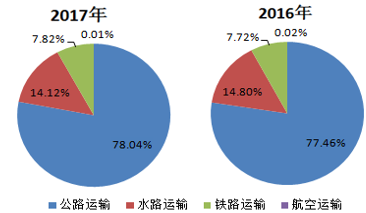 圖1 我國貨運結構變化對比(2016-2017年)