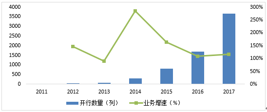 圖6 中歐班列開行整體情況統計(2011-2017年)