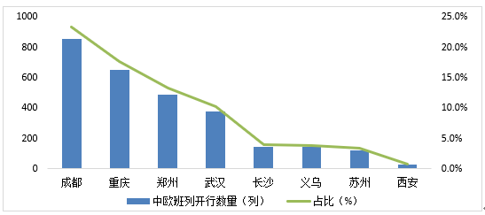 圖8 主要城市中歐班列開行統計(2017年)