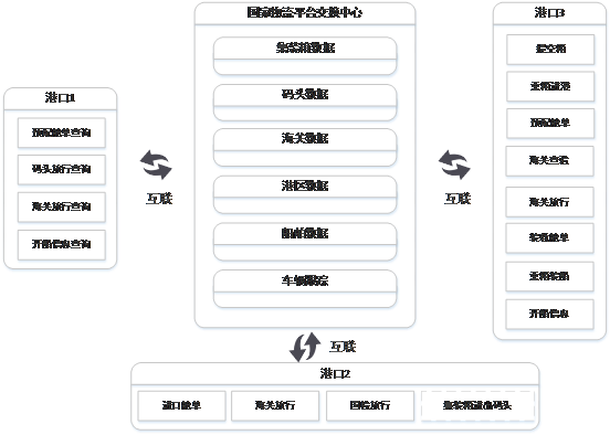 互聯對接港口企業、航運企業、外貿物流企業以及港航EDI中心(交通電子口岸分中心),高效獲取口岸監管相關數據,有效送達相關信息服務;建立與海關、國檢、邊檢部門間的信息交換共享服務通道,并通過港航EDI中心(交通電子口岸分中心)實現與各地海關、檢驗檢疫和邊防等部門間的信息共享。與沿江沿海主要港口、重點航運企業和外貿物流企業以及港航EDI中心完成互聯,面向港航企業、航運船舶提供準確權威的進出港相關信息服務,并為其提供便捷的跨運輸方式單據交換通道。