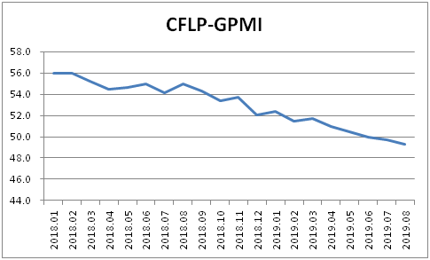 2019年8月份,亞洲制造業PMI較上月小幅回落0.2個百分點至49.7%。各主要國家PMI整體波動幅度不大,韓國和新加波制造業PMI有所回升,日本、印度和印尼等國家PMI均有不同程度回落;沙特制造業PMI高位回升。中國制造業PMI較上月小幅下降0.2個百分點至49.5%,走勢基本穩定。分項指數顯示,市場需求趨于穩定,企業生產活動小幅波動,經濟仍具有一定的趨穩運行基礎。一是大型企業保持較好支撐作用,今年以來,除6月份降至49.9%外,其余月份內大型企業PMI均處于擴張區間,小型企業活力有所釋放,小型企業生產指數連續2個月明顯上升,且增幅擴大;二是新動能和消費品行業保持平穩擴張態勢,增速持續快于制造業整體。