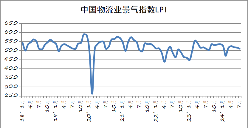 中國物流與采購聯(lián)合會發(fā)布的2024年7月份中國物流業(yè)景氣指數(shù)為51%,較上月回落0.6個百分點;中國倉儲指數(shù)為46.5%,較上月回落2個百分點。