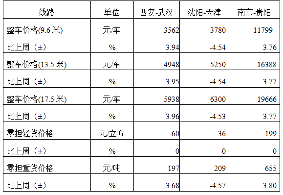 表1 本周部分線路平均價格及環比情況對比