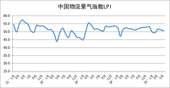 中國物流與采購聯合會發布的2025年5月份中國物流景氣指數為50.6%,較上月回落0.5個百分點;中國倉儲指數為50.5%,較上月回落0.2個百分點。