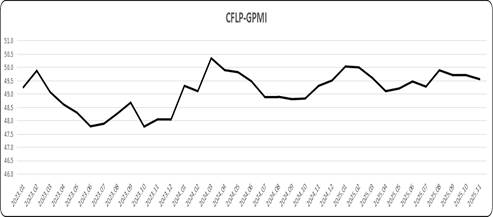 綜合數據變化,與上月相比,歐洲制造業整體波動不大,延續下半年以來緩慢復蘇的節奏,但歐洲經濟全面恢復的不確定性仍未顯著消退,復蘇動力的可持續性仍有待進一步強化。從外部環境看,地緣政治沖突和全球貿易摩擦等風險因素對歐洲經濟的傳導影響持續存在。從內部看,歐洲財政持續承壓,歐盟委員會秋季經濟展望報告預測歐盟財政赤字占GDP的比重將有所上升;歐洲各國經濟復蘇狀況仍不均衡。為應對挑戰,歐洲央行維持利率穩定以支持歐洲經濟恢復。歐元區CPI保持在2%左右,也為歐洲央行維持穩定的利率政策提供了數據支撐。