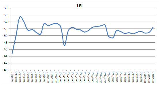 中國(guó)物流與采購(gòu)聯(lián)合會(huì)發(fā)布的2025年12月份中國(guó)物流業(yè)景氣指數(shù)為52.4%,環(huán)比回升1.5個(gè)百分點(diǎn)。主要指標(biāo)中,業(yè)務(wù)總量指數(shù)、設(shè)備利用率指數(shù)、新訂單指數(shù)、資金周轉(zhuǎn)率指數(shù)、從業(yè)人員指數(shù)處在擴(kuò)張區(qū)間且環(huán)比保持回升。全年數(shù)據(jù)來(lái)看,四個(gè)季度景氣指數(shù)均值穩(wěn)定回升,第四季度后兩個(gè)月連續(xù)回升,12月景氣指數(shù)為今年最高,反映出實(shí)體經(jīng)濟(jì)物流業(yè)務(wù)需求持續(xù)活躍。