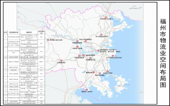 依托長樂區(qū)、福清市、羅源縣、閩侯縣等產(chǎn)業(yè)集群,結(jié)合國家生產(chǎn)服務(wù)型物流樞紐建設(shè),通過新建配建,以及改造提升現(xiàn)有物流設(shè)施,優(yōu)化生產(chǎn)物流集聚區(qū)空間布局,分別形成羅源灣北岸、江陰港區(qū)、松下港區(qū)、長樂國際機(jī)場周邊地區(qū)和閩侯縣南嶼鎮(zhèn)、青口鎮(zhèn)生產(chǎn)物流集聚區(qū)。