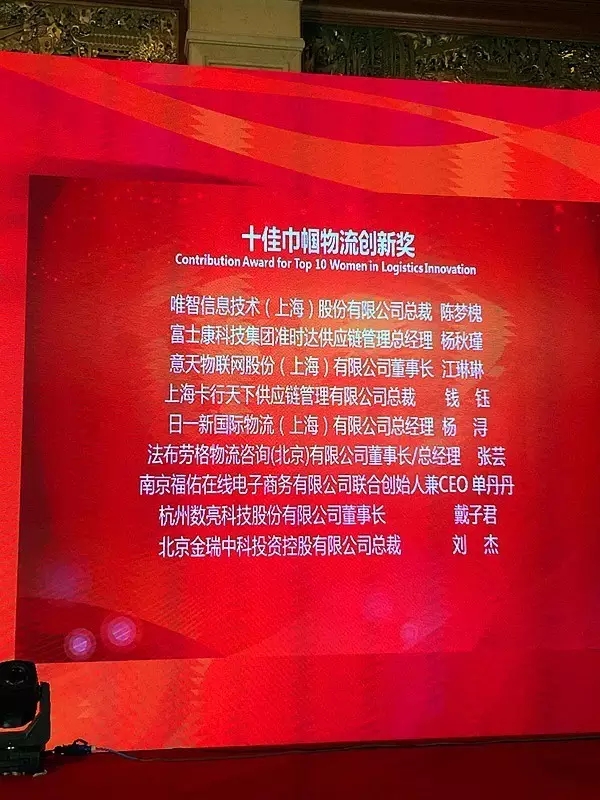 唯智創始人CEO陳夢槐女士榮獲“十佳巾幗物流創新獎”