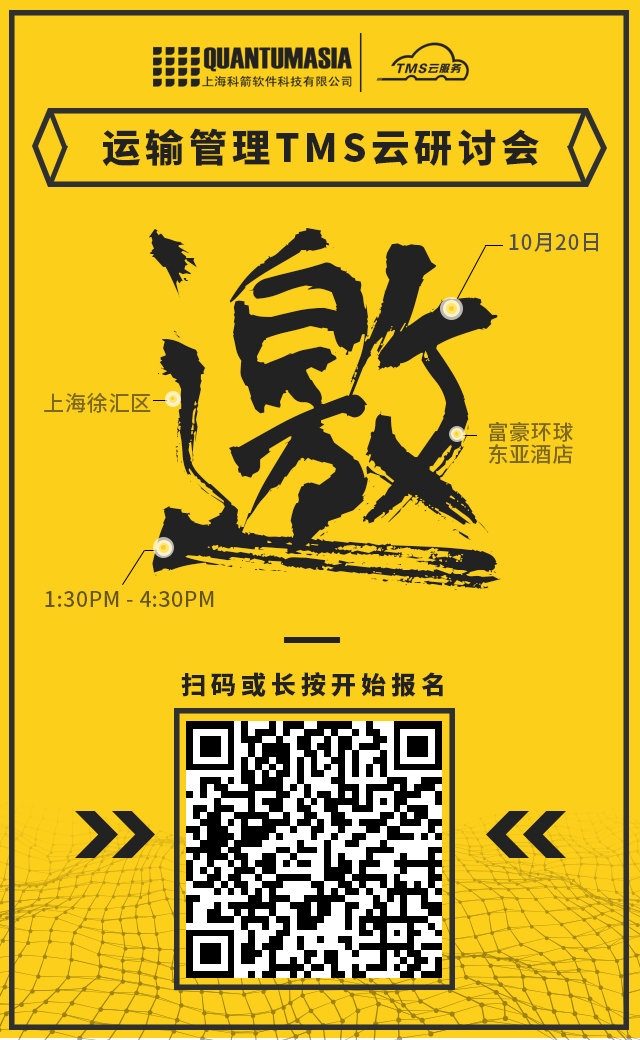 由上海科箭軟件舉辦的首次運(yùn)輸管理TMS云研討會(huì)將于2016年10月20日在上海徐匯區(qū)富豪環(huán)球東亞酒店隆重開展,歡迎各領(lǐng)域精英人士參與。報(bào)名請長按邀請函中的二維碼,并點(diǎn)擊“識(shí)別圖中二維碼”