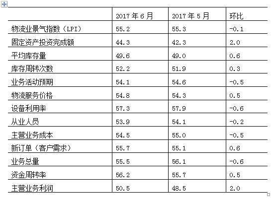 2017年6月份福建省物流業景氣指數(LPI)為55.2%