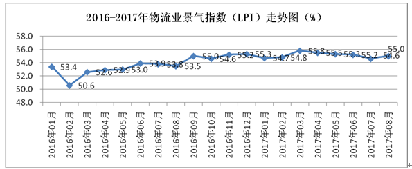 2017年8月份福建省物流業景氣指數(LPI)為55.0%