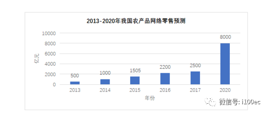 3、2017年我國農村網絡零售額超過1.2萬億元,其中農產品的網絡零售交易額占20%,預計達到2500億元。農業部規劃2020年我國農產品電商將達到8000億元。