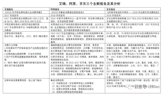 2018年1月,艾瑞發布《2018年中國生鮮電商行業消費洞察》,阿里發布《2018年餐桌消費潮流趨勢報告》,京東發布《環球尋味進階中國年——2018年生鮮年貨消費報告》,本報告結合三個報告,同時還考慮到一些非生鮮類農產品,來分析中國農產品網絡零售(特別是生鮮)消費市場。