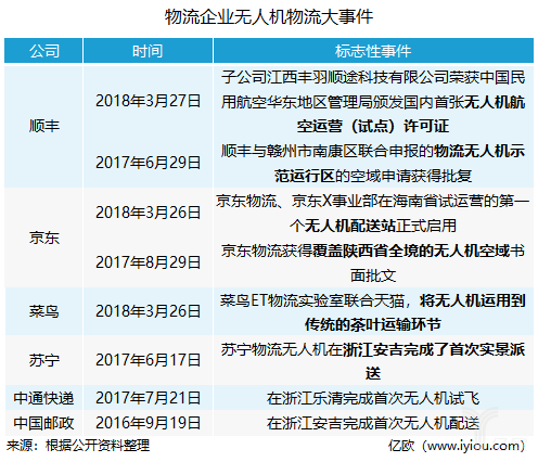 無人機物流在降本增效,提升用戶體驗的優勢不可小覷,除順豐外,諸多物流企業、電商企業近年來都在積極嘗試與探索物流無人機的運營。
