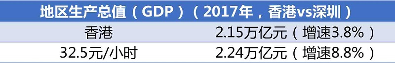 作為中國企業(yè)上市的國際金融中心,香港仍具有很強的存在感,不過,香港的產(chǎn)業(yè)結(jié)構(gòu)偏重于金融和房地產(chǎn),在初創(chuàng)企業(yè)培育方面落后于深圳。在GDP方面,1997年,香港的GDP曾占中國整體的18%,但2009、2011年先后被上海和北京超越,2017年更是被深圳超越。當然,絕對不能說香港經(jīng)濟現(xiàn)狀很糟糕,2017年3.8%的GDP增速,比多數(shù)發(fā)達國家都要強很多,只是跟鄰居——深圳相比,在經(jīng)濟增速、產(chǎn)業(yè)結(jié)構(gòu)和發(fā)展士氣上,就顯得不太搶眼了,考慮到深圳GDP增速是香港的兩倍多,雙方的差距未來也許會越來越大,這是所有人都不希望看到的結(jié)果。