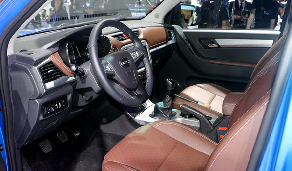 帥鈴T8不僅顏值出彩,內在表現更是高端舒適。新車內飾的主色調為棕色,儀表板、門板、中央扶手等內飾大量覆蓋軟性材質,提升內飾的層次感,并展現高端皮卡應有的細節處理。